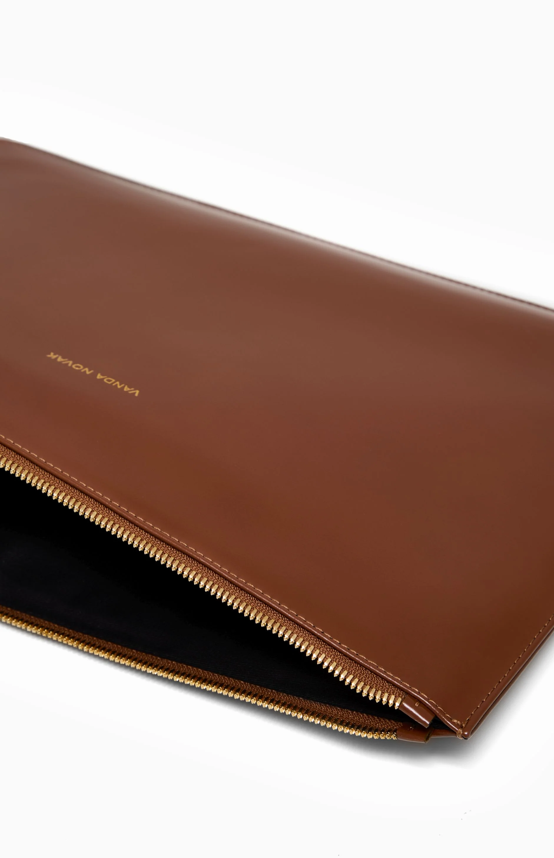 Prosta forma oraz miękka, jednolita tekstura skóry nadają mu wyjątkowego charakteru. Uwagę przyciąga wytłoczony złoty napis Vanda Novak oraz suwak w złotym kolorze ze skórzanym wykończeniem.