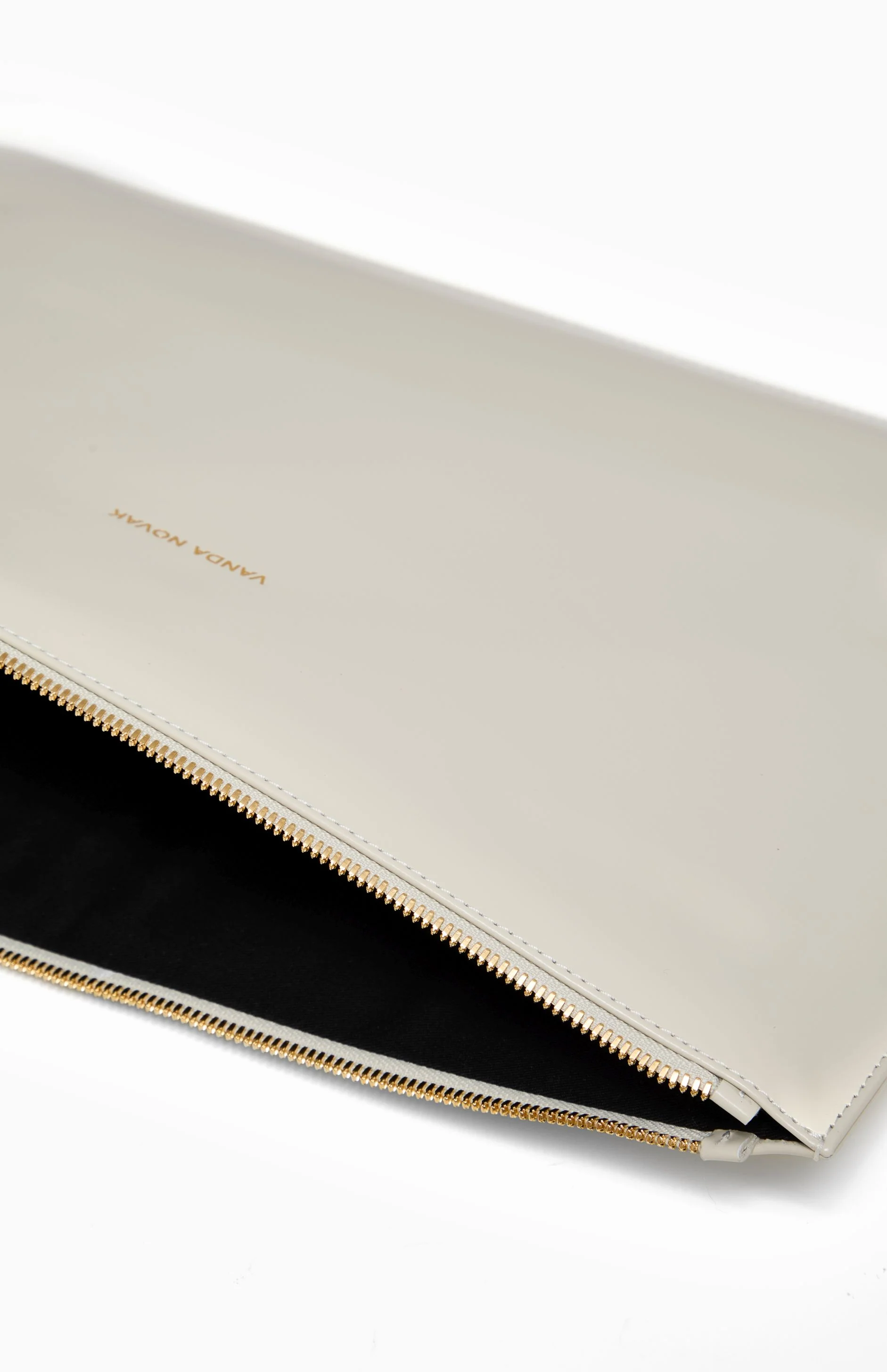 Delikatny kremowy odcień i minimalistyczny design podkreślają elegancję produktu. Złoty wytłaczany napis z nazwą marki oraz zamek błyskawiczny w złotym kolorze, dodają całości charakteru.
