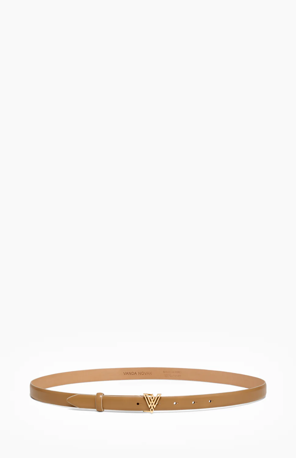 Charakteryzuje się gładką fakturą i miękkimi wykończeniami. Kluczowym elementem jest złota klamra w kształcie logo marki Vanda Novak, która nadaje całości nowoczesnego wyrazu, a jednocześnie wyjątkowej elegancji.