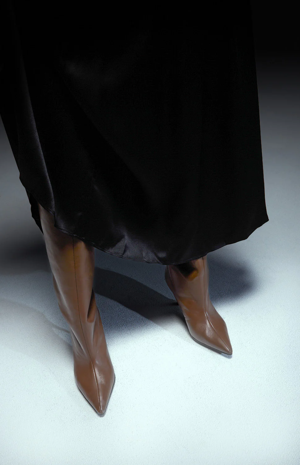Brązowe kozaki na szpilce. Zarówno sięgająca do kolan cholewka, jak i wyściółka oraz podeszwa wykonane są z wysokiej jakości, włoskiej skóry naturalnej. 65-milimetrowy obcas został zwieńczony małą, złotą kulką, charakterystyczną dla marki Vanda Novak. To nie tylko element dekoracyjny, ale również stabilizujący całą konstrukcję.
