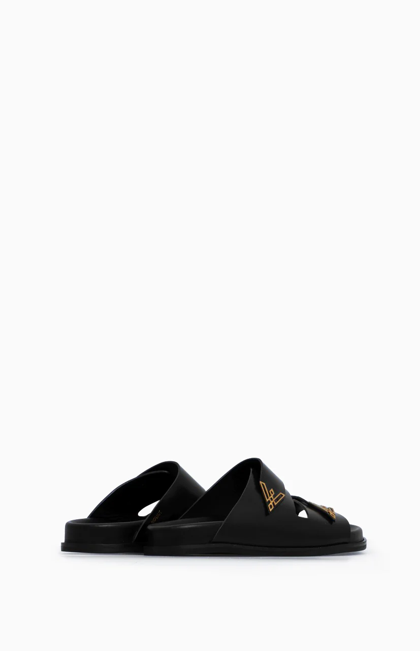 Klapki są dostępne w kilku stylowych kolorach, wszystkie z błyszczącymi paskami zakończonymi eleganckimi złotymi klamrami z logo Vanda Novak. Paski w Sandy nie są regulowane, pomimo tego świetnie trzymają się na stopie. Dzięki wersji dla dorosłych, możesz dopasować klapki do siebie i Twojego dziecka.