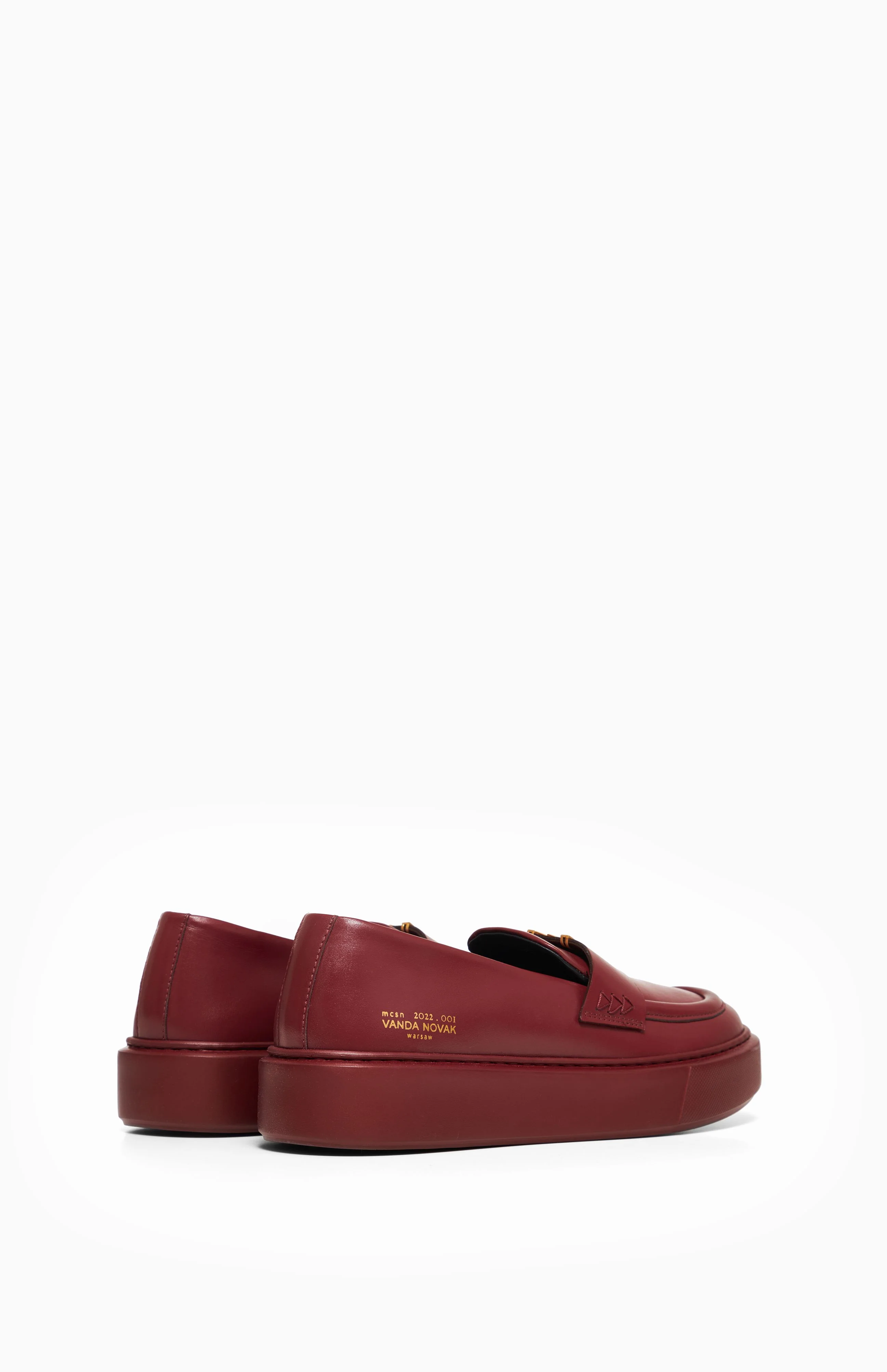 Mokasyny w rubinowym kolorze, idealne na jesienne dni. Wykonane z wysokiej jakości błyszczącej skóry naturalnej, sprowadzanej z Włoch od najlepszych dostawców.