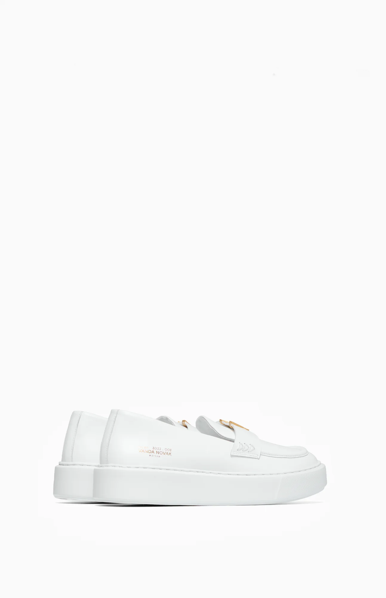 Na pasku umieszczono złote logo marki Vanda Novak, które dodaje elegancji, a z boku buta widnieje wytłoczony złoty napis z unikalnym numerem serii. Termoformowalna wkładka fusbet zapewnia doskonałą amortyzację i wygodę przez cały dzień.